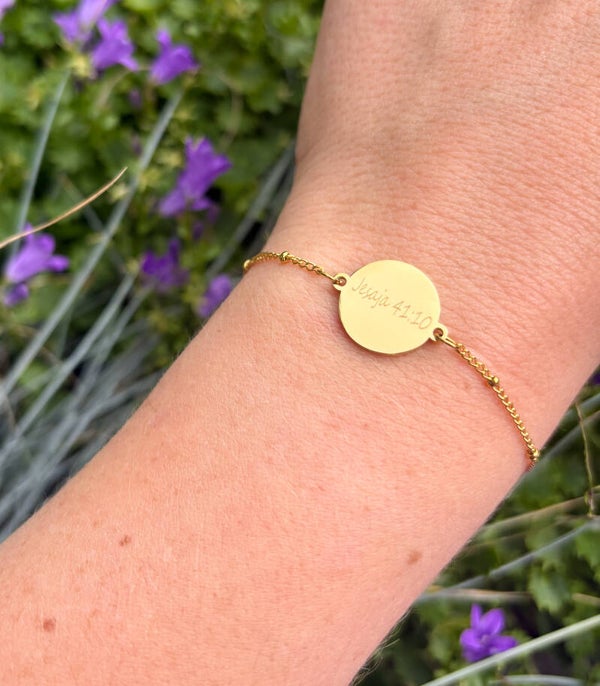 Personaliseer deze prachtige armband met een tekst of symbool die voor jou betekenis heeft. Het armbandje is in 4 verschillende varianten leverbaar.
