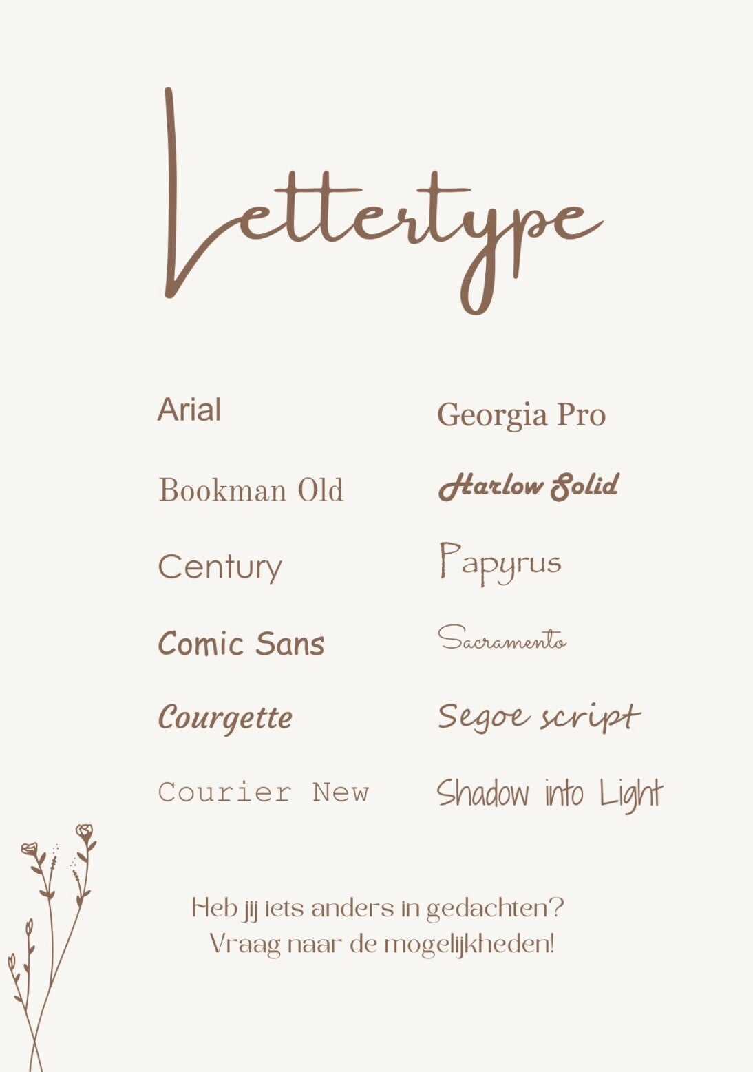 - Heb je ervoor gekozen om een tekst op de achterkant te graveren? Vul dan jouw tekst en lettertype in.