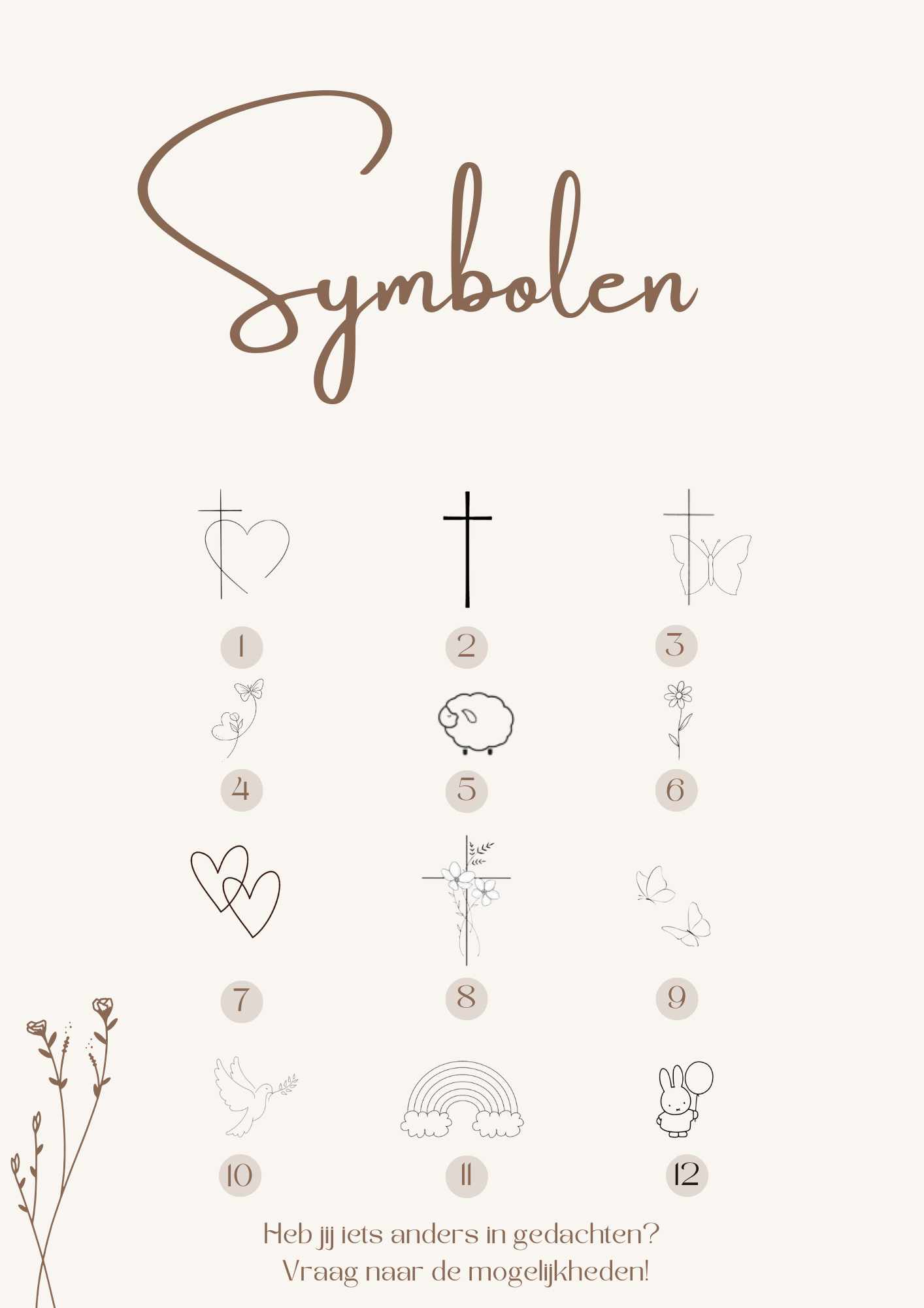 Geen zorgen! Stuur ons een berichtje met jouw symbool en wij kijken graag naar de mogelijkheden om het voor jou te graveren.